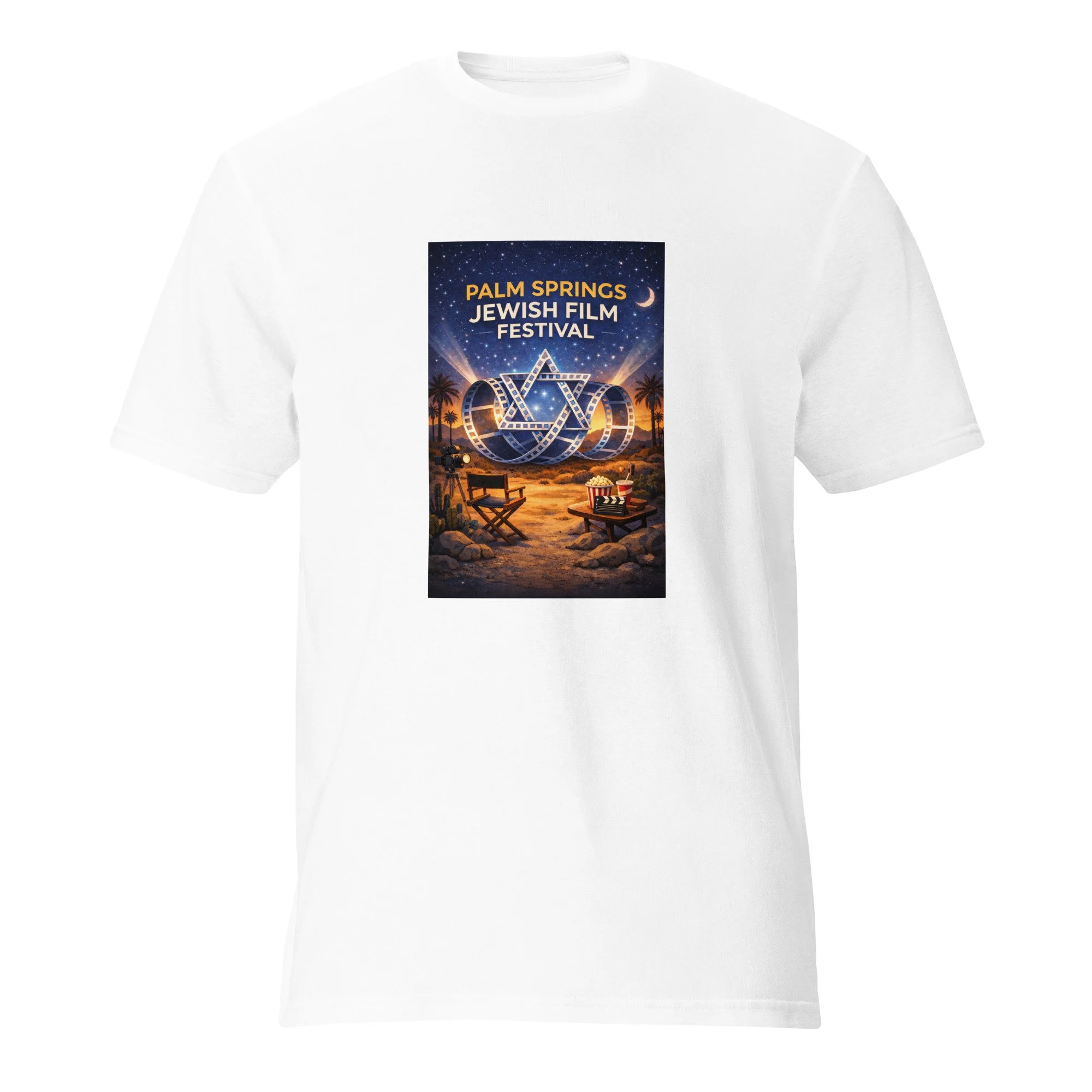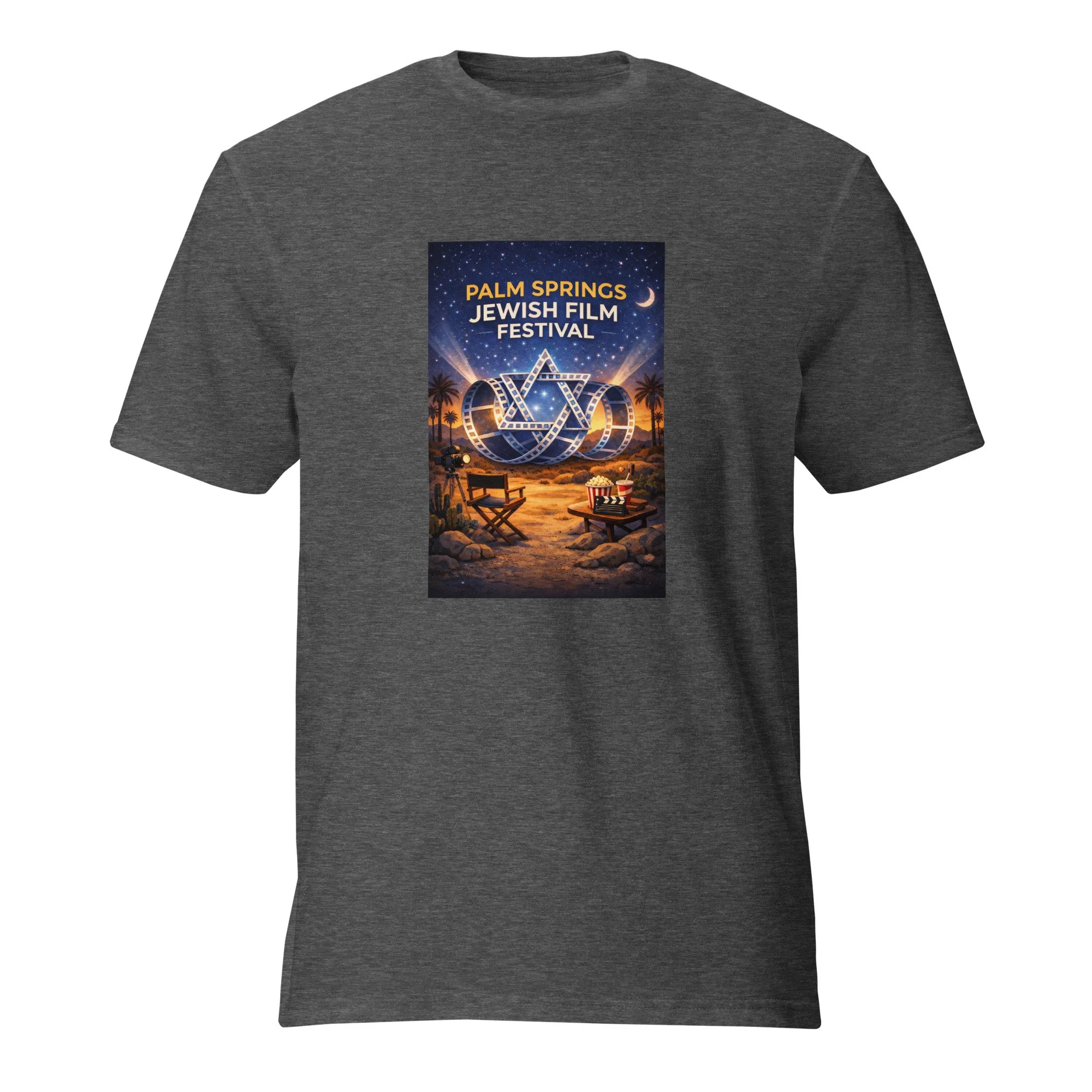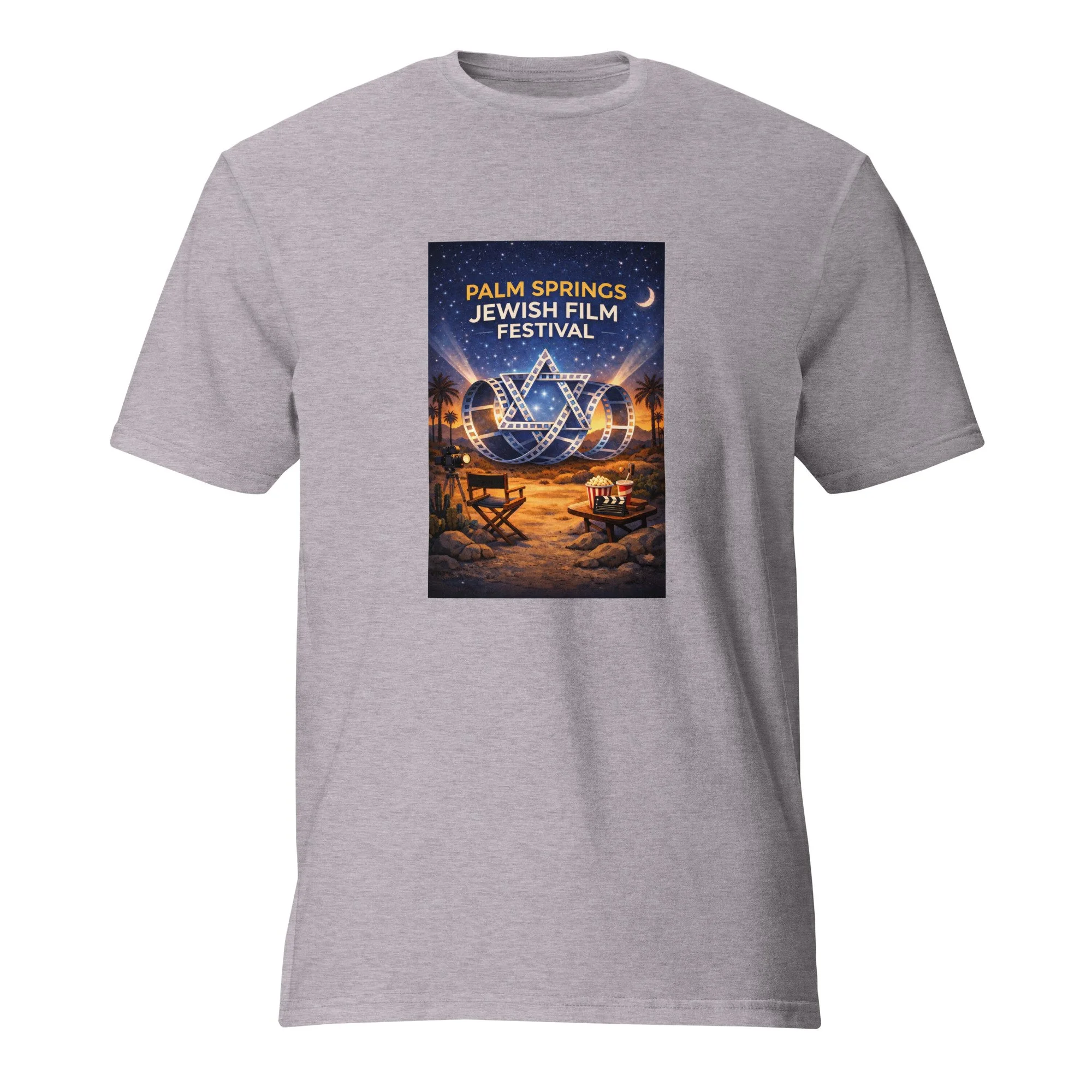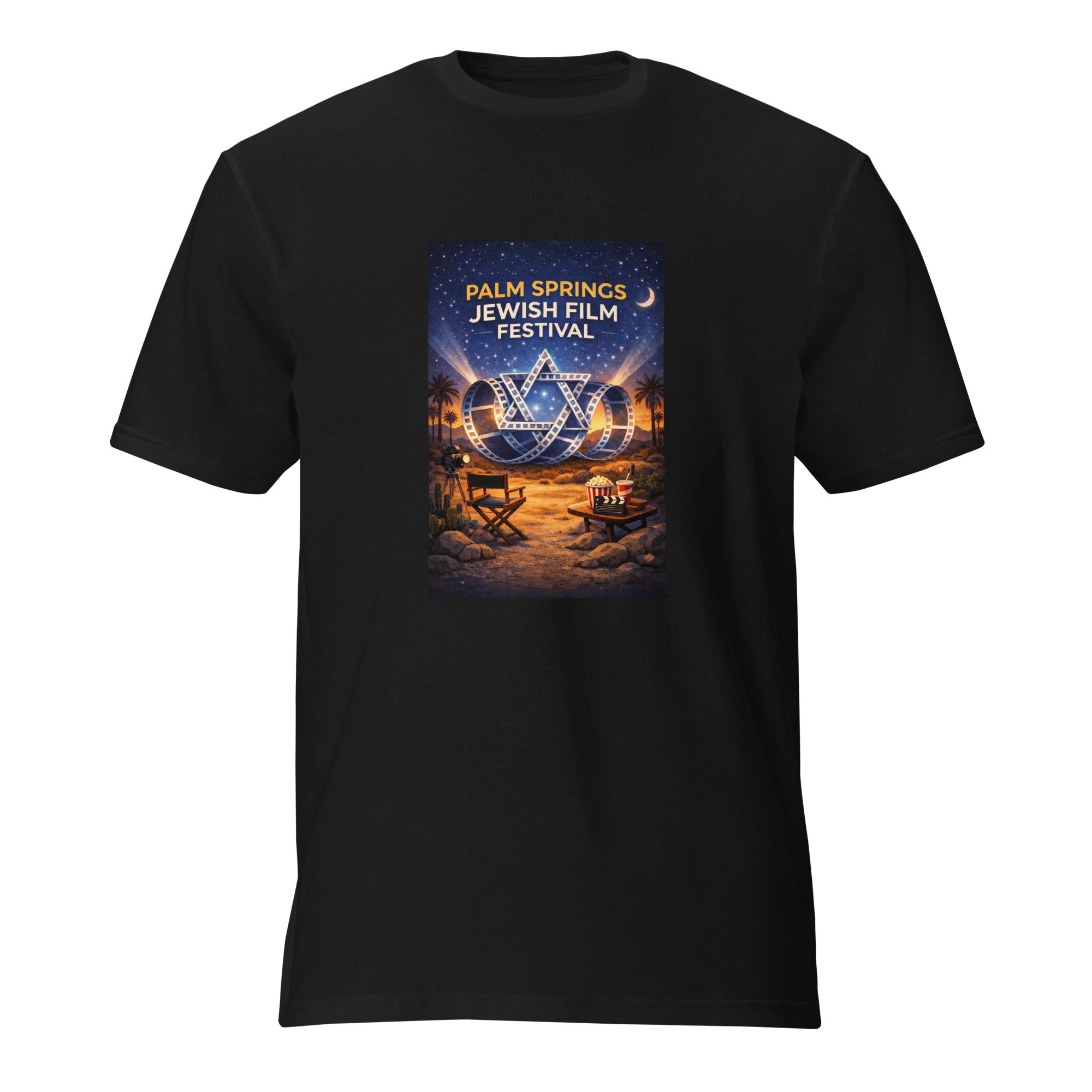 Film Merch › Short-Sleeve T-Shirt Image 1 of 6 Image 2 of 6 Image 3 of 6 Image 4 of 6 Image 5 of 6 Image 6 of 6 Short-Sleeve T-Shirt $25.00 This thick cotton t-shirt makes for a go-to wardrobe staple! It's comfortable, soft, and its tubular construction means it's less fitted. • 100% ring-spun cotton • Pre-shrunk • Shoulder-to-shoulder taping All Proceeds Sponsor Temple Isaiah Jewish Communty Center Color: Select Color Black Heather Dark Grey Royal Blue Heather Grey White Size: Select Size S M L XL 2XL 3XL Add To Cart Added! This thick cotton t-shirt makes for a go-to wardrobe staple! It's comfortable, soft, and its tubular construction means it's less fitted. • 100% ring-spun cotton • Pre-shrunk • Shoulder-to-shoulder taping All Proceeds Sponsor Temple Isaiah Jewish Communty Center