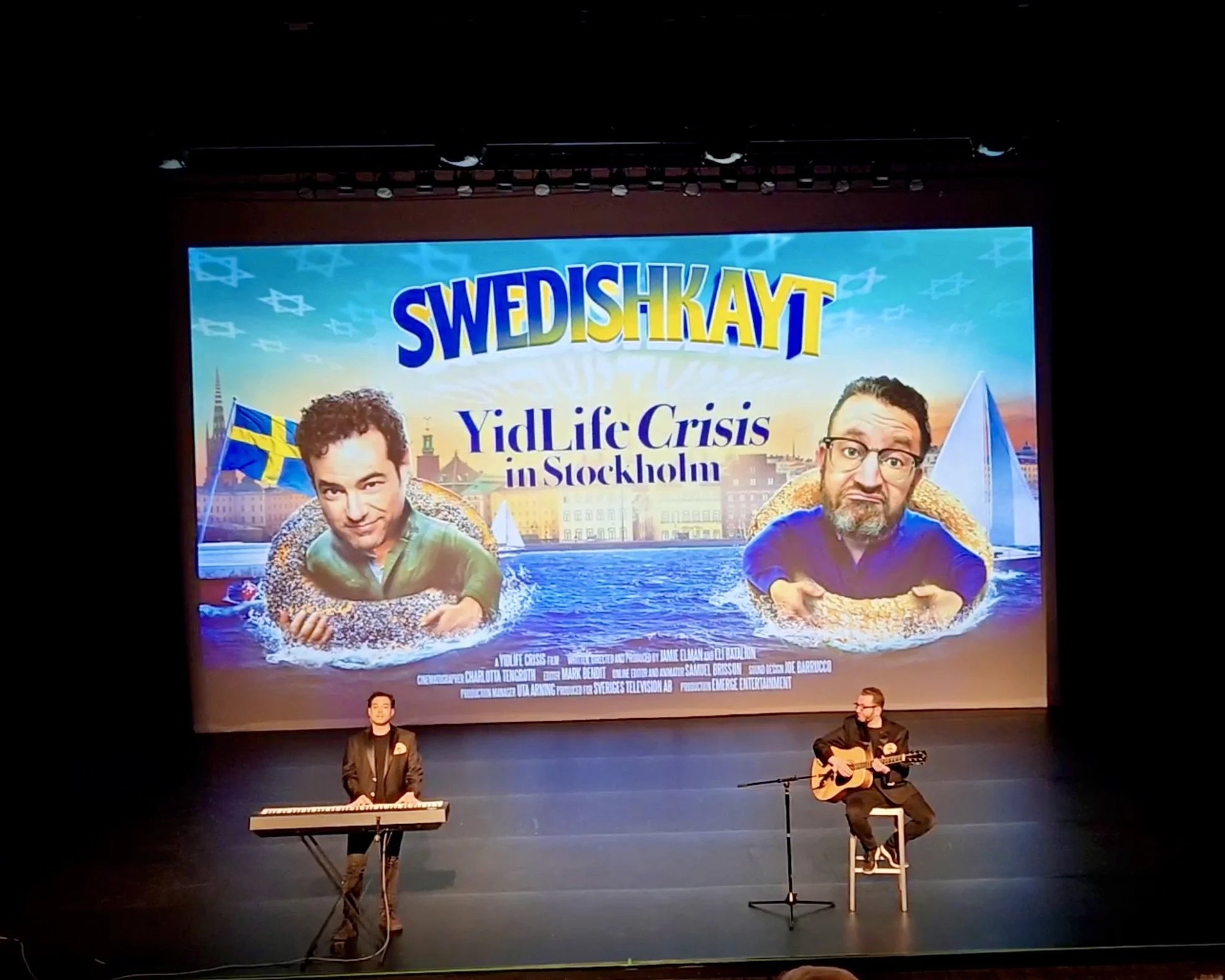 Swedishkayt: YidLife Crisis in Stockholm is a documentary where creators Eli Batalion and Jamie Elman explore Sweden's unexpected, vibrant Jewish community, uncovering 250 years of history, a surprising Yiddish revival (Yiddish is a government-recognized language!), and a resilient culture through humor, history, and heartfelt encounters, celebrating Jewish happiness, identity, and surprising connections.